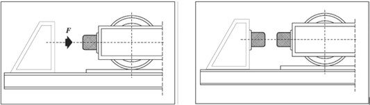 W czasie zderzenia z odbojnikiem, energia kinetyczna urządzenia zamieniana jest na energię potencjalną sprężystości odbojnika. Energia ta zależna jest od ugięcia odbojnika x i jego współczynnika sprężystości k (wzór 2):